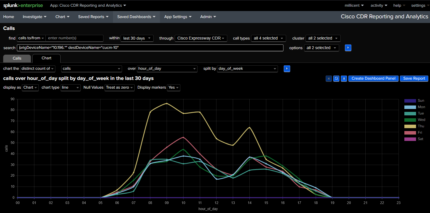 As with our other “Supporting Apps”, it augments the main “Cisco CDR Reporting and Analytics” app. When installed alongside the main app, and after you have the Expressway data flowing in, you can click around in the app UI to investigate and generate charts and dashboards on your expressway traffic, in the same way that you do for your CallManager CDR and CUBE CDR.